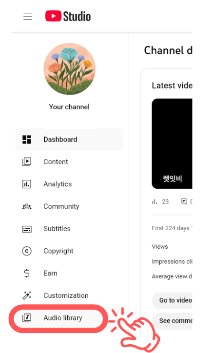 4️⃣ In the left-hand menu, click Audio Library
